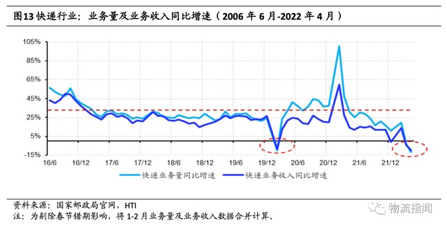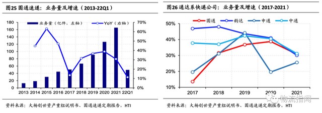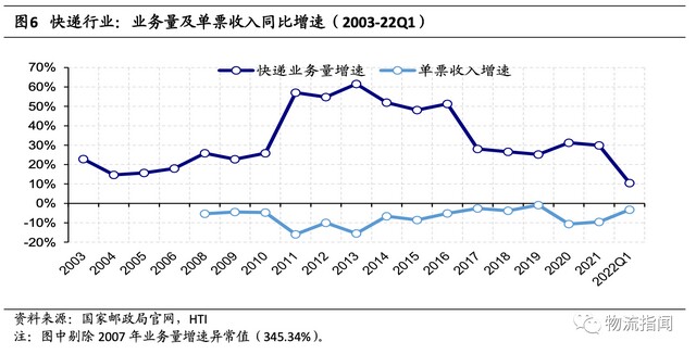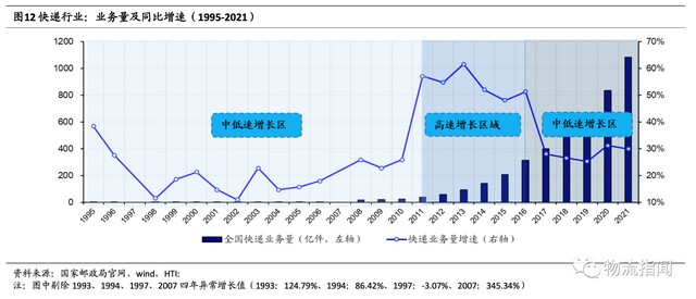 2017-至今:电商增速放缓,快递行业也逐步由高速增长阶段迈向中速增长阶段,2017-2021年业务量和业务收入复合增速分别为28.23%和20.16%。