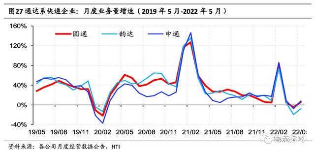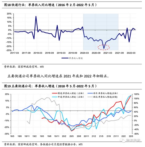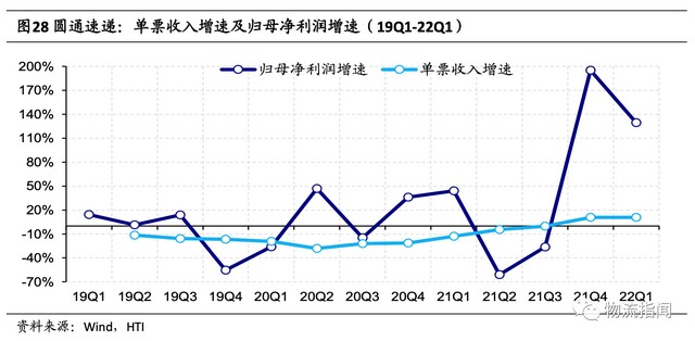 我们认为,旺季供需变化和监管政策趋严对单票收入有较大影响,但2022年淡季期间通达系的单票收入表现仍具韧性,单票收入在4月及5月分别同比增加2.1%和0.71%。我们预计,价格战放缓的趋势将延续至2022全年。