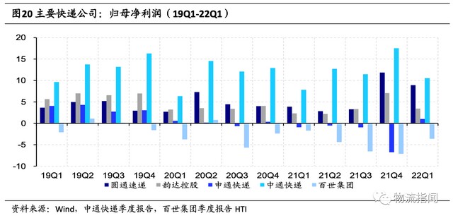 行业竞争焦点将由价格驱动转向价值驱动。我们认为,虽然头部快递在公司发展过程中都越来越重视科技的力量,在不断加大研发投入,但不可否认,快递行业整体仍属于传统行业。价格战是这个传统行业出清的必经之路,而消费升级的背景下,快递业务量不断增长的过程中,末端消费者、商家对快递服务品质提出了更高的要求。“规模效应下成本降低—降价—获取业务量—实现进一步规模效应”的闭环逻辑逐渐走弱,快递产品服务升级和客户分层将逐渐成为快递公司的竞争策略,行业竞争焦点将由价格驱动转向价值驱动。公司竞争力的关键还是要看是否具备定价能力,服务质量和客户体验在一定程度上可以反映定价能力。长期来看,主要快递企业若要巩固行业龙头地位,不但需要通过自动化和数字化设备的不断投入及升级来实现降本增效,也需要积极打造和构筑差异化产品体系,以应对消费者多层次、个性化、差异化的快件寄递需求。2019-2021年,价格战激烈演绎下(图19),主要快递公司虽然业务量高速增长,但是盈利能力有所减弱(图20)。我们认为,在主要快递公司的降本空间渐趋瓶颈、规模效应逐渐减弱的情况下,单纯通过降低成本来维持盈利能力的策略或将面临挑战。而价格战放缓后主要快递公司盈利情况好转,盈利好转是完成产品服务升级和客户分层的重要支撑。