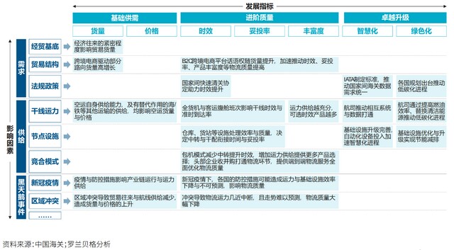 2.中国跨境航空货运领航仪——影响因素领航仪亦从需求、供给、黑天鹅事件三方面,总结核心参数的重要影响因素。