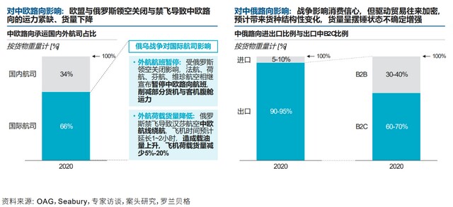 货量:领空关闭与禁飞导致中欧路向运力紧缺、货量下降;中俄路向货种结构性变化,货量波动加剧
