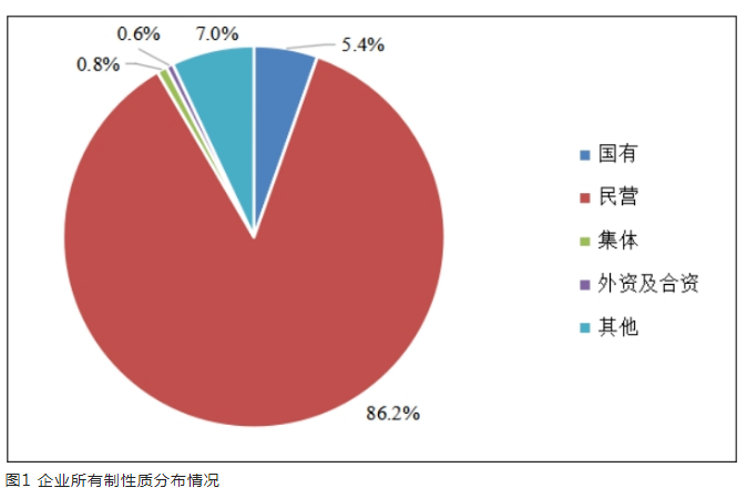 The small, medium-sized and micro logistics enterprises surveyed are mainly private enterprises. According to the survey data, the proportion of small, medium and micro enterprises of private nature is as high as 86.2%, followed by state-owned enterprises, accounting for 5.4%, and the proportion of collective nature, foreign capital and joint venture enterprises is relatively small, accounting for a total of 1.4%.