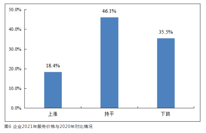 The surveyed enterprises reported that the price was generally flat and had great downward pressure. According to the survey data, nearly half of the surveyed enterprises reported that the service price was flat compared with the previous year, and more than one-third of the enterprises reported that the price fell, accounting for only 18.4%.