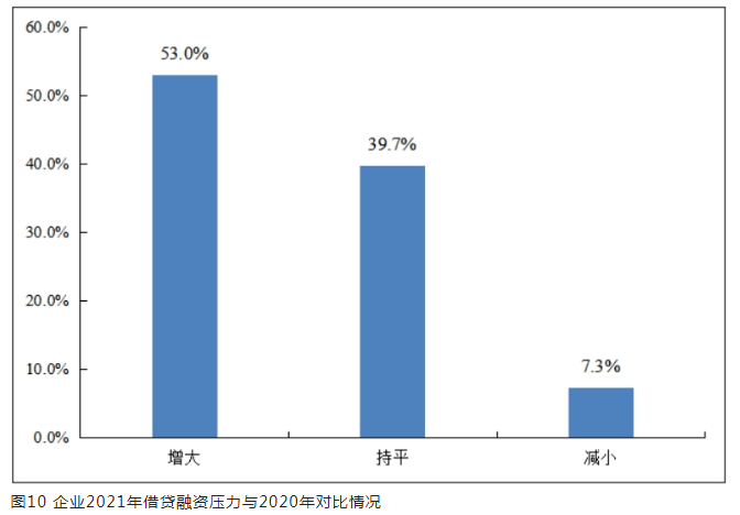 The pressure on small, medium and micro logistics enterprises to borrow and finance has increased. According to the survey data, excluding the enterprises without financing needs, more than half of the enterprises reported that the borrowing and financing pressure had increased compared with the previous year, and nearly 40% of the enterprises reported that it was basically the same as the previous year.