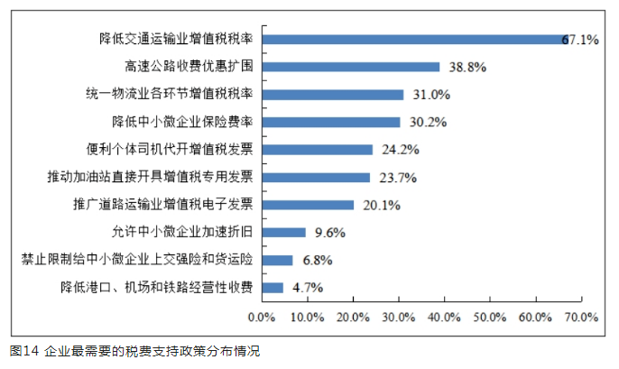 Nearly a quarter of enterprises hope to facilitate individual drivers to issue VAT invoices on their behalf. At present, the transportation business of small and medium-sized enterprises is mainly outsourced to individual drivers, and most individual drivers are unable to provide compliant invoices, mainly because it is inconvenient to issue invoices on behalf of others. Small scale taxpayers of goods transportation can apply for issuing invoices on behalf of others at the place of tax registration, the place of departure of goods, the place of arrival of goods or the place of contracting transportation business. However, the single business amount of individual drivers is low. If they apply to the tax department for issuing invoices according to the formal procedures, the queuing time is long, the procedures are cumbersome and inconvenient, which affects the normal operation of drivers. With the development of digital economy and the rise of freight Internet platform, more and more enterprises purchase transportation capacity through the platform. In 2016, the State Administration of Taxation launched the pilot of issuing invoices on behalf of online freight platforms. A number of platform enterprises obtained the qualification of issuing invoices on behalf of drivers, which solved the problem of issuing invoices on behalf of drivers. There was also the risk of "false Invoicing". It was still difficult to solve the problem of issuing invoices for a large number of non platform transportation enterprises.