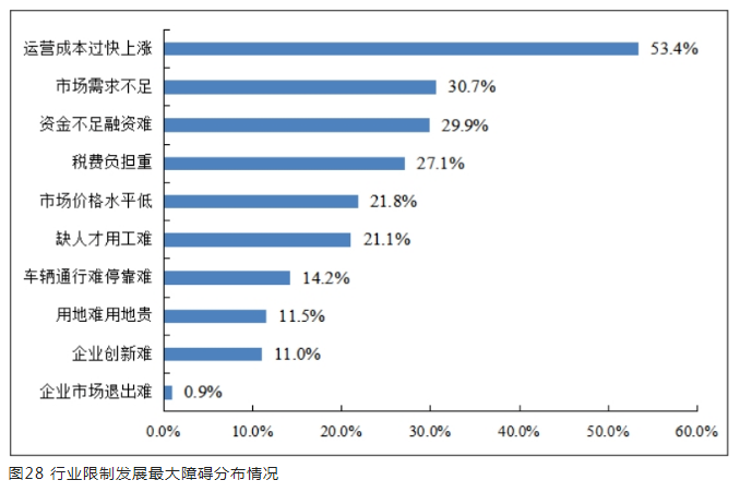 More than half of the enterprises surveyed reported that the biggest problem restricting the development of the industry is the rapid rise of operating costs, including the continuous increase of cost pressure on energy, manpower, land and capital, the lack of anti risk ability of small, medium-sized and micro enterprises, and the aggravation of industry losses, which will not ensure the absorption of employment and increase social instability.