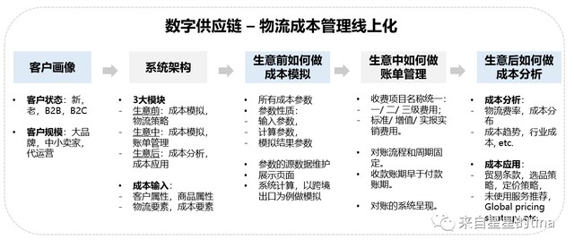 Post business: generate business cost analysis and reports. For example, visual reports on cost changes and trends, total costs, unit costs, and P & L. at the same time, ask questions and analyze whether the cost is healthy. If the cost is too high, how to reduce the cost? For example, by reducing the shortage rate of explosive funds through supply chain planning and operation, can we change from air transportation to sea transportation? For the platform, we can also recommend some competitive services to customers.