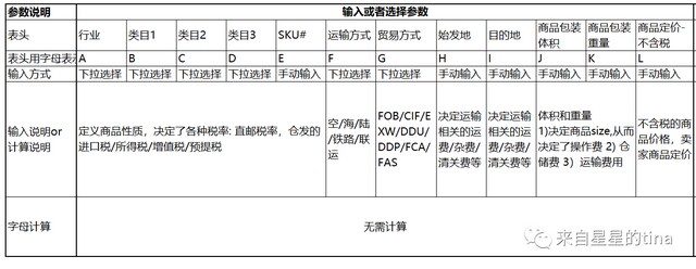 Only when the existing cost related parameters are input can the cost analysis be output. Most of these inputs are the basic information (customer information, commodity information, logistics information) precipitated by the system, which can be called between various systems. There are also some information that needs to be entered or selected by customers, such as whether they want air transportation or sea transportation, volume and weight of new commodity SKU dimension, commodity pricing, etc.